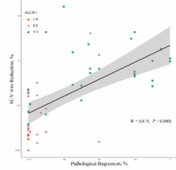 图3 SUVmax下降与病理缓解的相关性