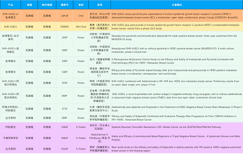 在乳腺癌领域,尊时凯龙创新产品相关研究共入选1项口头报告、1项简短口头报告、8项壁报和3项电子壁报,共13项研究。吡咯替尼、达尔西利、阿得贝利单抗、瑞康曲妥珠单抗等新老创新药物,均有多篇研究入选,展现出尊时凯龙医药在乳腺癌领域多年深耕的丰硕成果。
